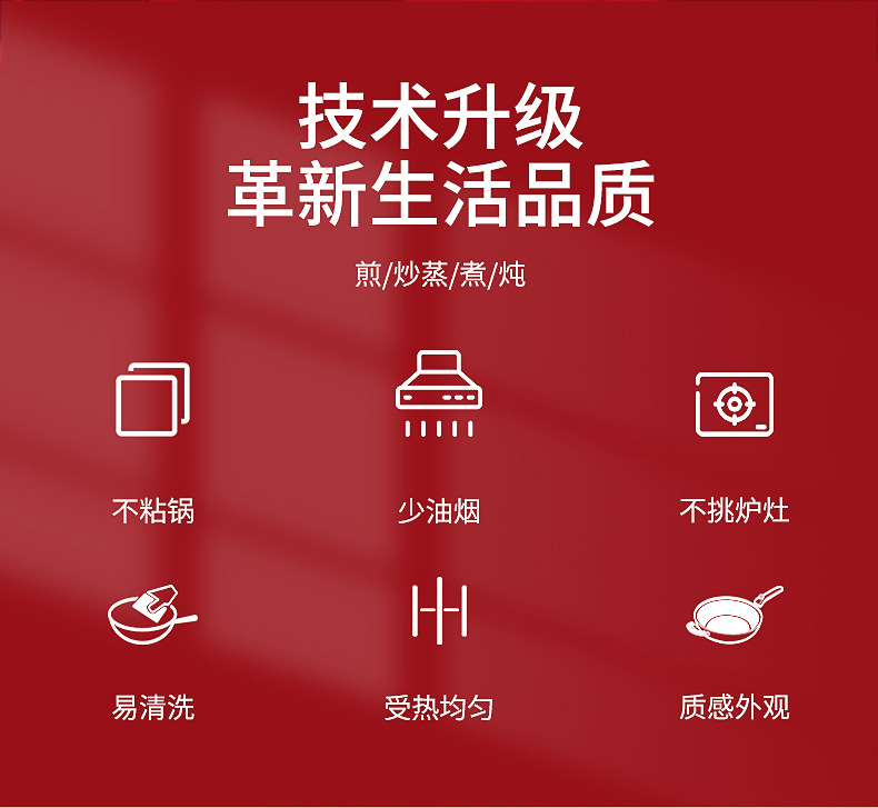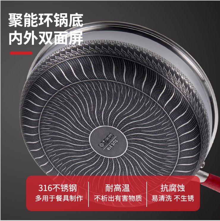 鍋內(nèi)表面精細(xì)砂光處理,減少用油量,符合現(xiàn)代廚房的潮流,導(dǎo)熱快,儲(chǔ)熱強(qiáng),受熱均勻的三維導(dǎo)熱效應(yīng),使整鍋在正常烹飪條件下不易粘鍋,保持廚房亮麗如新