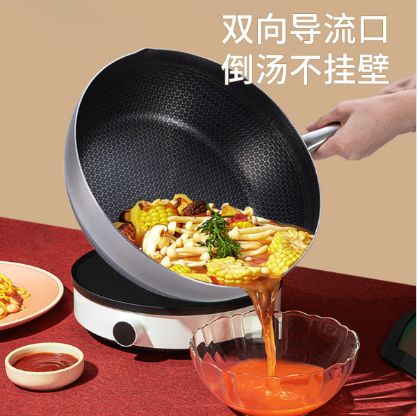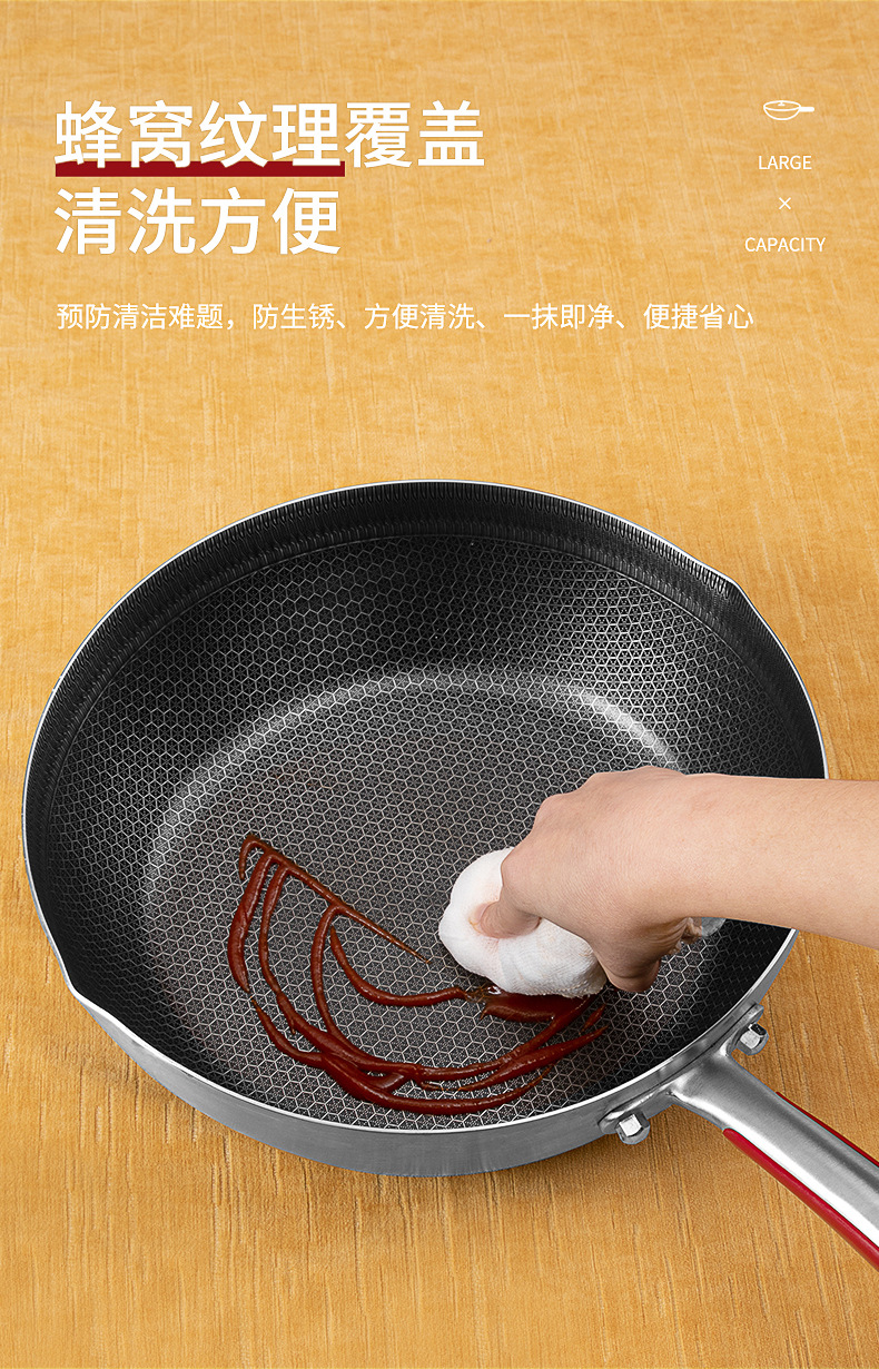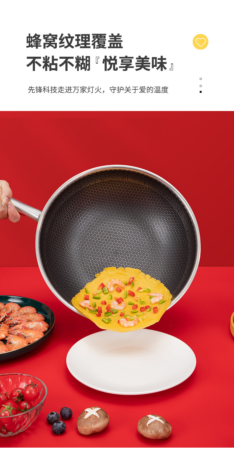 多層材料符合技術(shù),熱傳導(dǎo)款,受熱均勻,不產(chǎn)生熱點,適用于各種爐灶。 內(nèi)層食品級304不銹鋼+中間鋁合金+外層430不銹鋼,真正做到不粘不易糊鍋底少油煙。