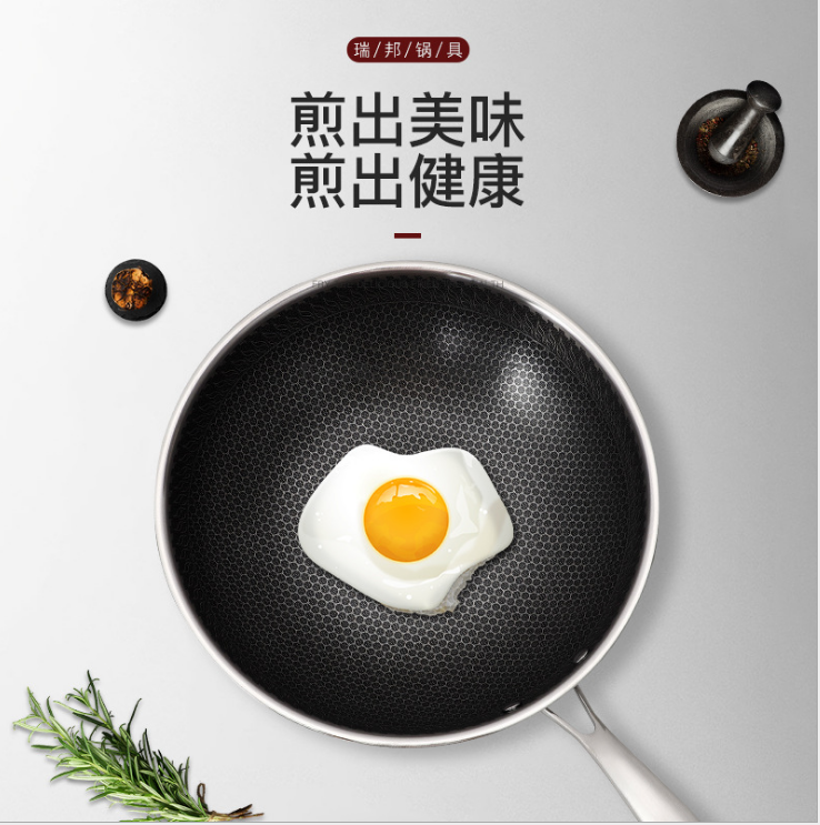 304三層鋼單面蜂窩不粘炒鍋